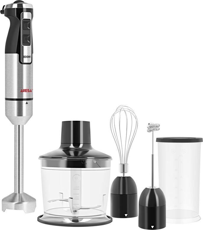 • Номинальная потребляемая мощность: 400Вт • Максимальная мощность: 800 Вт • Плавная регулировка скорости • Функция "ТУРБО" (максимальное увеличение скорости) • Ножка блендера из нержавеющей стали • Съемная насадка-блендер с 4-х лопастным ножом • Эргономичный дизайн 4 ОСНОВНЫЕ ФУНКЦИИ: • Измельчение • Смешивание • Взбивание • Капучинатор КОМПЛЕКТАЦИЯ: • Мерный стакан для смешивания (объём 0,6 л) с крышкой • Чаша для измельчения (объём 0,5 л) с крышкой • Венчик для взбивания • Нож для измельчения • Вспениватель молока