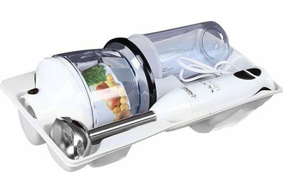Удобная анатомическая форма ручки Две скорости работы Насадка блендера изготовлена из высокопрочной пищевой стали Чаша – измельчитель удобна в использовании и подходит для небольших объемов Емкость объемом 1 литр с крышкой идеальна для приготовления жидкого теста, коктейлей и пюре Обороты до 11000 в минуту Номинальная мощность 280 Вт 230 B ~ 50 Гц