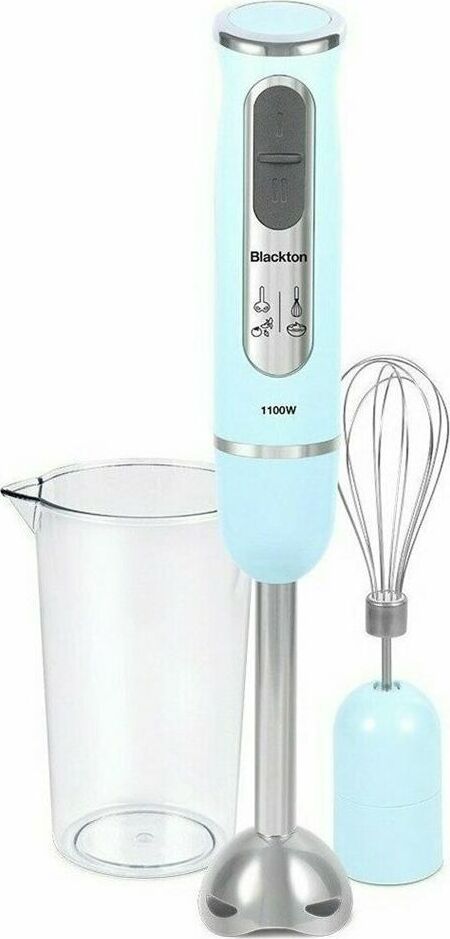 BLACKTON BT HB1030SS Мятно-голубой 2 в 1: блендер+ миксер Мощность 1100 Вт Режим ТУРБО 2 скоростных режима Скорость вращения до 15000 об/мин Многофункциональный нож для измельчения и смешивания Мерный стакан 0.6 л Петля для подвешивания Низкий уровень шума