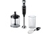 Мощность 750Вт. 12 режимов скорости и дополнительная кнопка «Турборежим» для максимальной мощности. Ножка блендера из нерж. стали с 4 острыми лезвиями ножа QuattroBlade. В комплекте: измельчитель д/зелени, орехов и сыра, венчик д/взбивания яичных белков..