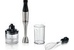 Характеристики: Тип: блендер погружной Мощность: 1200 Вт Регулировка скорости вращения: есть Импульсный режим: есть Количество скоростей/режимов: 12 Режим измельчения: есть Материал корпуса: пластик Материал ножей: нержавеющая сталь Материал мерного стакана: пластик Материал погружной части: металл Объем мерного стакана: 0.5 л Мойка съемных частей в посудомоечной машине: есть Электропитание: от сети Длина сетевого шнура: 1.4 м Размеры (ВхШхГ): 39.5х6х7.8 см Вес: 1.5 кг Цвет: нержавеющая сталь/черный Комплектация: Блендер Насадка-чоппер Венчик для взбивания Измельчитель Мерный стакан Инструкция по использованию Гарантийный талон