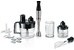 Блендер погружной, мощность 1200 Вт, материал корпуса: металл, материал погружной части: нержавеющая сталь, импульсный режим, защита от перегрева, в комплекте: венчик; измельчитель; крюк для замешивания теста; насадка-шинковка