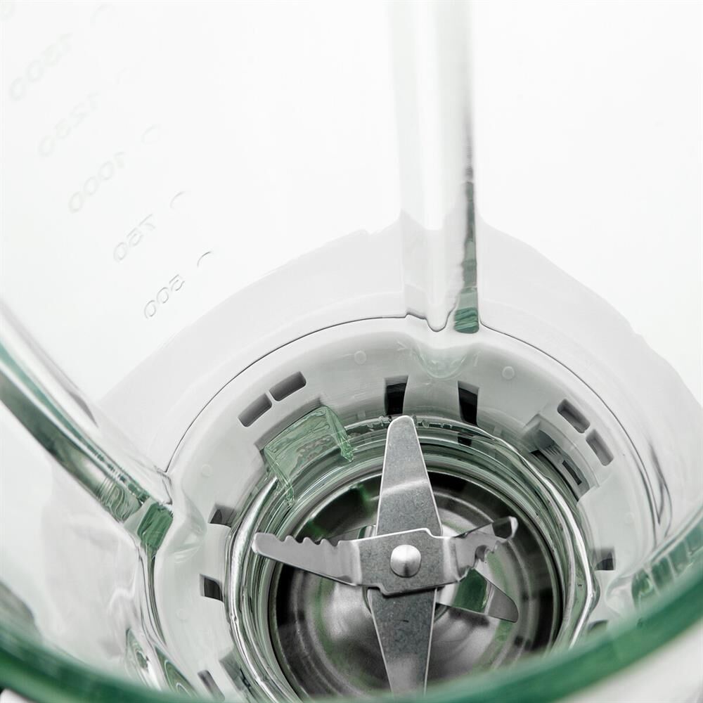 Высокопроизводительный мотор 1200 Вт Плавная регулировка скорости 5 скоростей + импульсный режим работы Колка льда 6 ножей из нержавеющей стали Электронное управление Металлический корпус Стеклянный кувшин 1,75 л Защитная блокировка Прорезиненные нескользящие ножки Электропитание 220 240 В, ~50/60 Гц