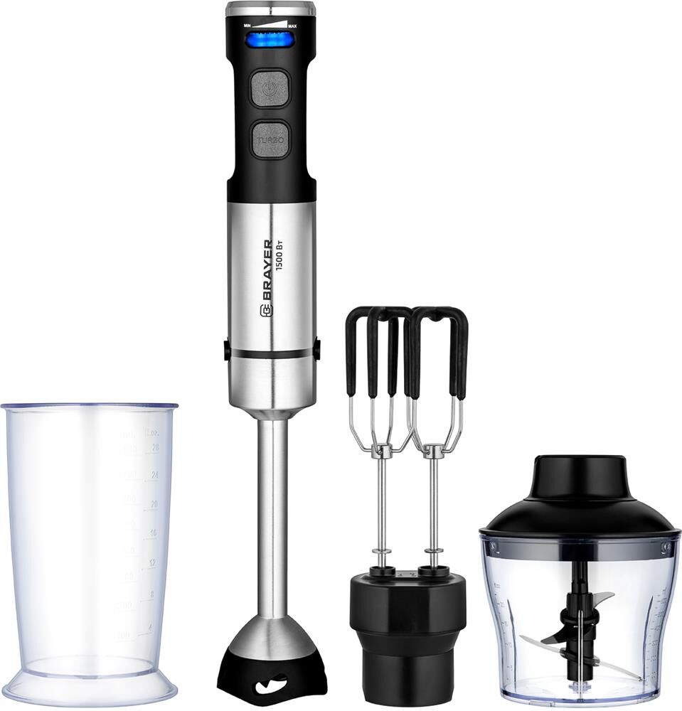 1264BR Блендер погружной BRAYER 1500 Вт, насадка-миксер, измельчитель 600 мл, стакан 800 мл