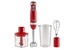 Параметры Максимальная мощность 1000 Вт Номинальная потребляемая мощность 400 Вт Объем чаши измельчителя 500 мл Объем мерного стакана 700 мл Описание Блендер электрический предназначен для смешивания, измельчения и взбивания продуктов и жидкостей в бытовых и аналогичных условиях Цвет: красный Нож из нержавеющей стали со специальной заточкой лезвий Три сменные насадки: - насадка для смешивания - венчик для взбивания - измельчитель Мерный стакан Петелька для подвешивания Режим «ТУРБО» Упаковка: цветная коробка