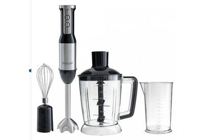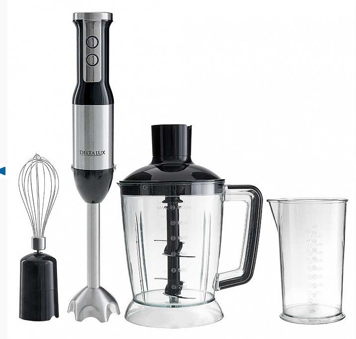 DELTA LUX DE-7003B черный Параметры Максимальная потребляемая мощность 1000 Вт Номинальная потребляемая мощность 600 Вт Объем чаши измельчителя 1500 мл Объем мерного стакана 500 мл Описание Блендер электрический предназначен для смешивания, измельчения и взбивания продуктов и жидкостей в бытовых условиях Идеально подходит для приготовления супов-пюре, соусов и подлив, детского питания, смешивания разнообразных коктейлей, измельчения продуктов в бытовых и аналогичных условиях, в частности: в кухонных зонах для персонала в магазинах, офисах и прочих производственных условиях; в фермерских домах; клиентами в гостиницах, мотелях и прочей инфраструктуре жилого типа; в условиях режима пансиона «проживание плюс завтрак» Цвет: черный Двойной нож из нержавеющей стали Три сменные насадки: насадка для измельчения и смешивания венчик для взбивания измельчитель Мерный стакан Индикатор сети с LED-подсветкой кнопок Плавная регулировка скорости Режим «ТУРБО» Возможность измельчения льда Упаковка: цветная к