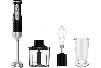 Максимальная мощность 1000Вт. Номинальная потребляемая мощность 600 Вт. Объем чаши измельчителя 500 мл. Объем мерного стакана 700 мл. Блендер электрический предназначен для смешивания, измельчения и взбивания продуктов и жидкостей в бытовых условиях. Цвет: черный. Насадки и ножи из нержавеющей стали. Специальная заточка ножей. Три сменные насадки: насадка для смешивания, венчик для взбивания, измельчитель. Противоскользящие ножки чаши измельчителя. Мерный стакан. 5 скоростных режимов. Режим «ТУРБО». Плавная регулировка скорости.