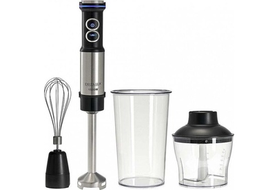 Максимальная мощность 1500 Вт Номинальная потреблямая мощность 1200 Вт Объем чаши измельчителя 600 мл Объем мерного стакана 800 мл Описание Блендер идеально подходит для приготовления супов-пюре, соусов и подлив, детского питания, смешивания разнообразных коктейлей, измельчения продуктов в бытовых и аналогичных условиях Корпус из нержавеющей стали и гигиеничного пластика Цвет: черный LED-подсветка Насадки и нож из нержавеющей стали Три сменных насадки: насадка для измельчения и смешивания венчик для взбивания измельчитель с крышкой Мерный стакан Плавное переключение скоростей Режим «ТУРБО» Упаковка: цветная коробка