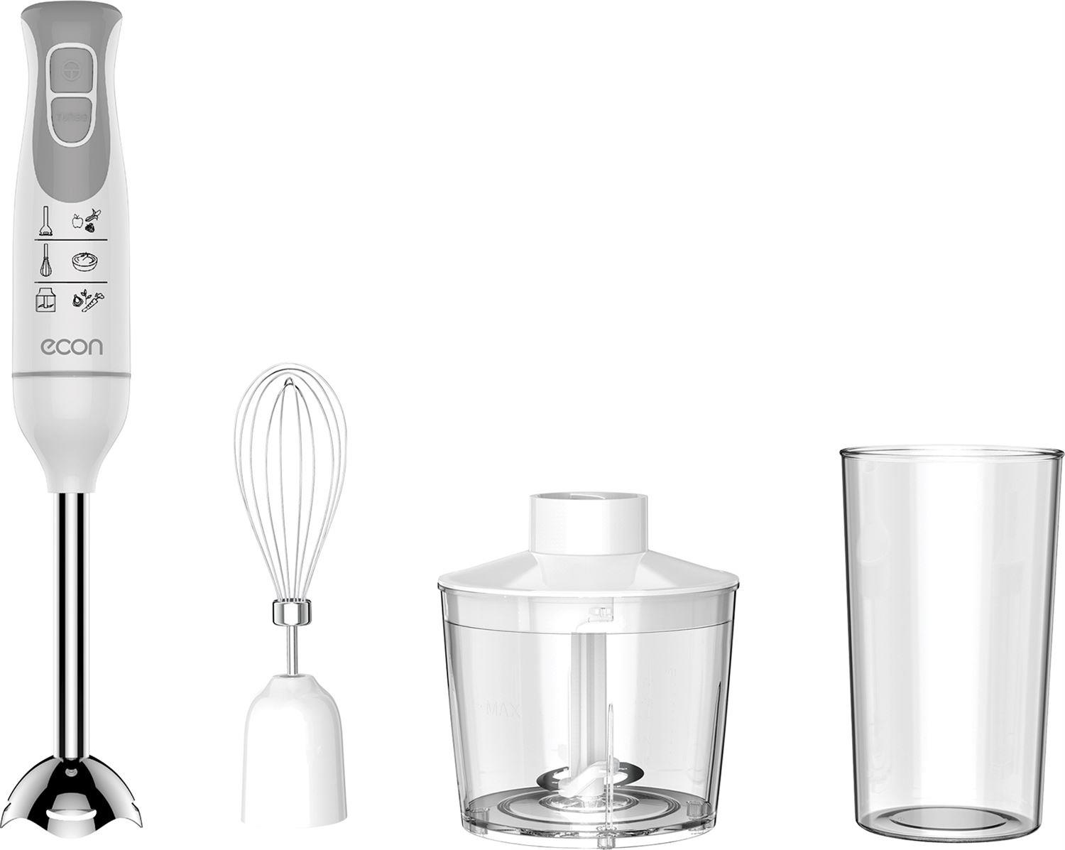 Блендер погружной, максимальная мощность 1400 Вт, 2 скорости, режим ТУРБО, стальная насадка-блендер, стальной нож - 2 лепестка, измельчитель 500 мл, мерный стакан 700 мл, венчик