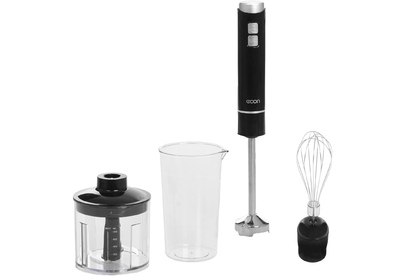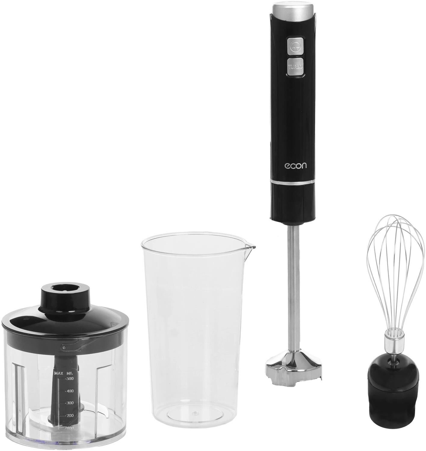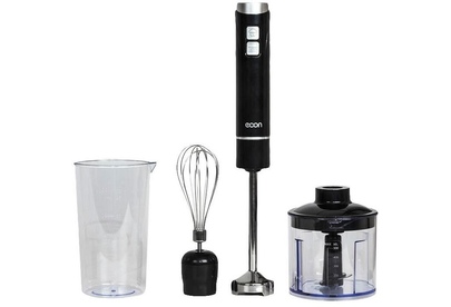 Блендер погружной, максимальная мощность 800 Вт, компактый размер - диаметр корпуса 42 мм, 2 скорости, насадка-блендер из нержавеющей стали, съемная насадка-венчик из нержавеющей стали, мини-измельчитель 500 мл, мерный стакан 700 мл, цвет черный с серым