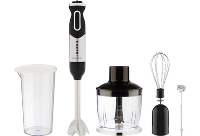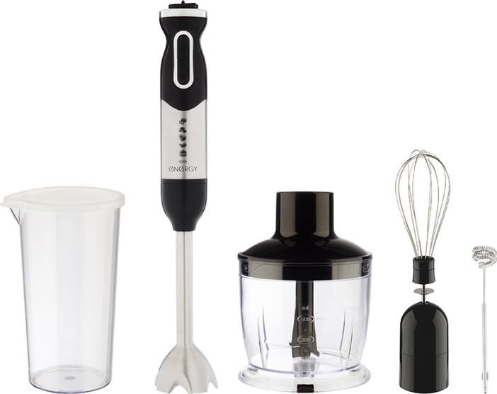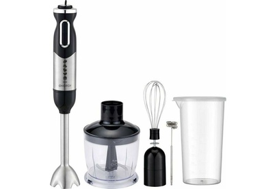 2 скорости работы Обычный и Turbo режим Регулятор скорости Ножи из нержавеющей стали Металлическая насадка блендер Стакан для смешивания 600 мл с крышкой Измельчитель 500 мл Венчик Вспениватель молока Петля для подвешивания Мощность 800 Вт Длина шнура 1,5 м