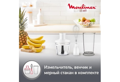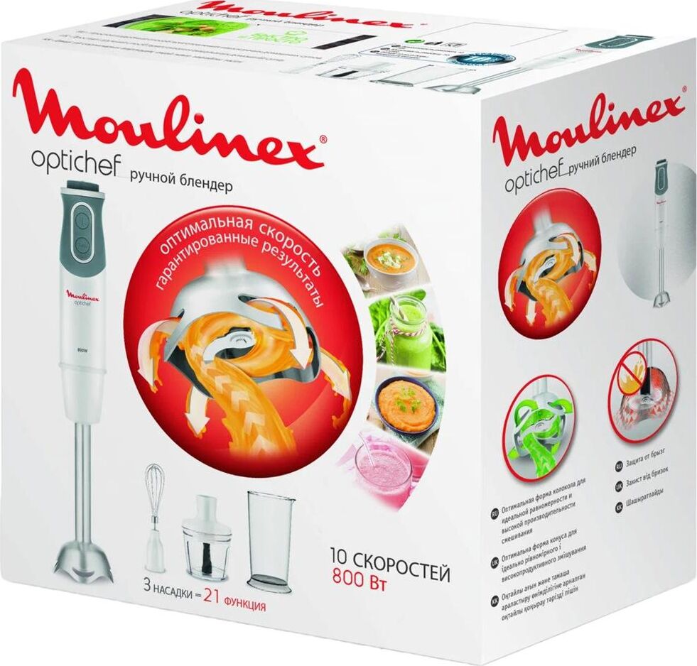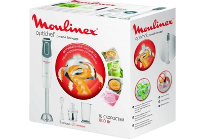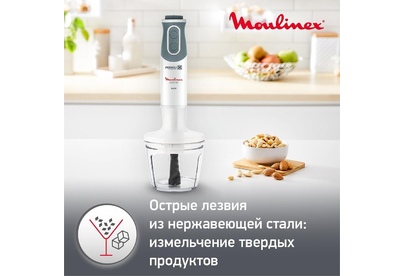 MOULINEX DD642132 погружной блендер,мощность 800Вт,механическое управлениечисло скоростей: 10,мерный стакан объем,мельничка объем,корпус из пластика,плавная регулировка скорости,