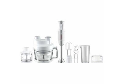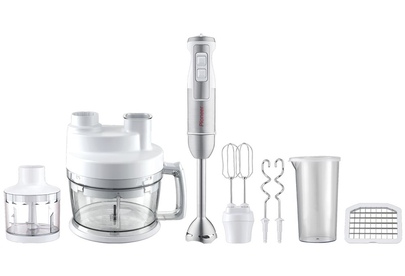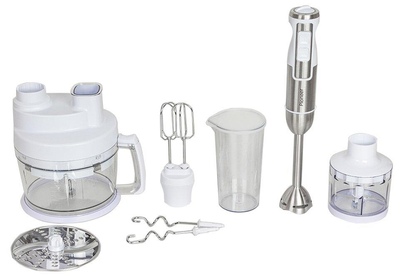Многофункциональный погружной блендер, максимальная мощность 1800 Вт, 2 копки скорости, режим Турбо, плавная регулировка скорости, погружная часть блендера из нержавеющей стали, лезвия блендера из нержавеющей стали, насадка - битеры, насадка - крючки для