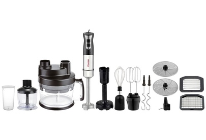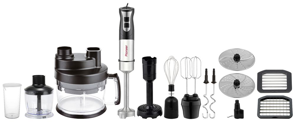 Многофункциональный погружной блендер, максимальная мощность 1800 Вт, 2 копки скорости, режим Турбо, плавная регулировка скорости, погружная часть блендера из нержавеющей стали, лезвия блендера из нержавеющей стали, насадка - битеры, насадка - крючки для