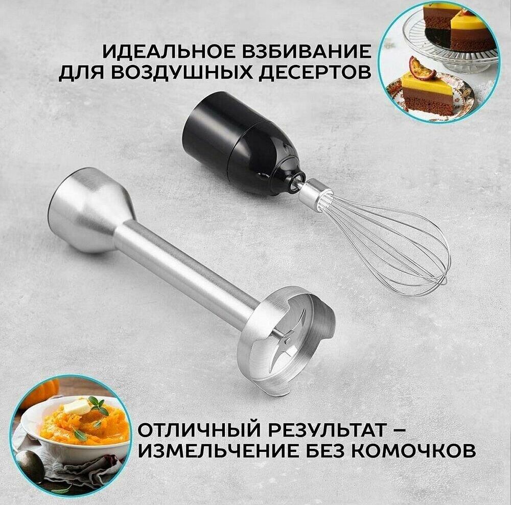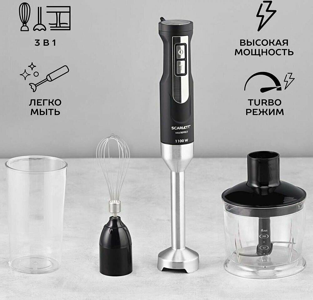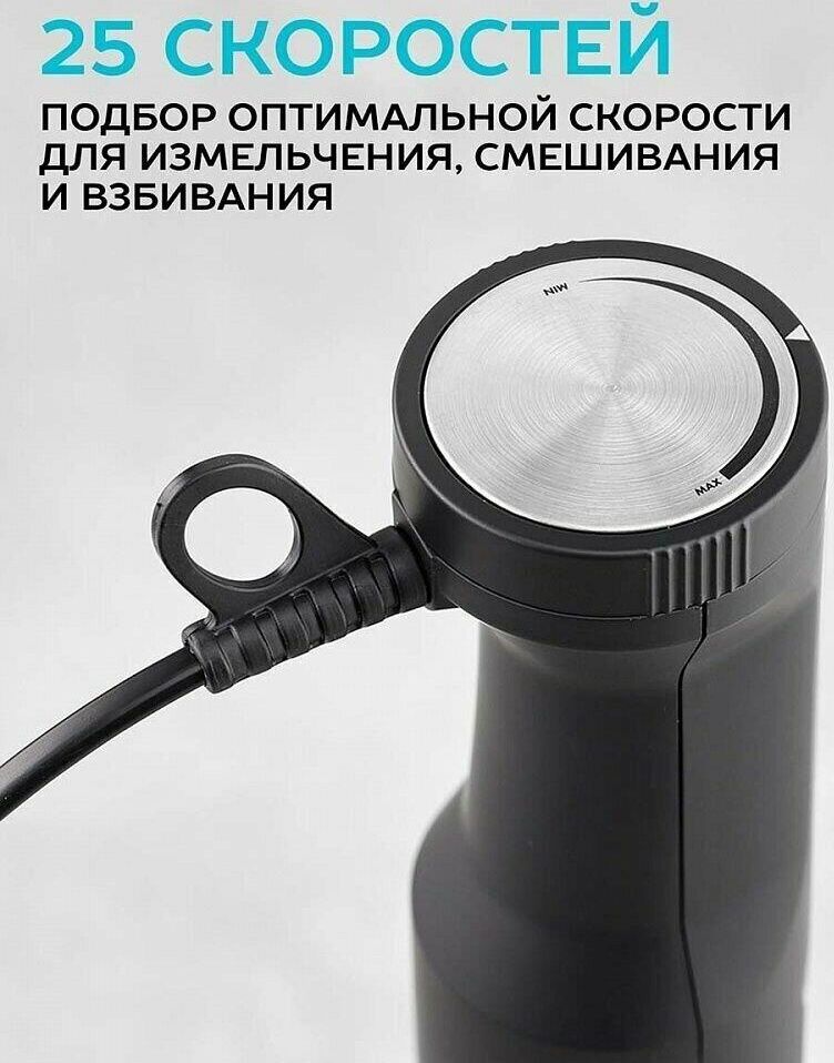 Тип: Погружной Мощность, Вт: 1100 Количество скоростных режимов: 25 Режим TURBO: Да Мини-измельчитель: Да Емкость мини-измельчителя, л: 0.6 Венчик для взбивания: Да Мерный стакан: Да Мерный стакан, л: 0.6 Материал погружной части: Металл Цвет: Черный