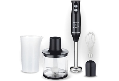 Блендер погружной, набор, максимальная мощность 1400 ватт, 2 скорости включая режим ТУРБО , погружная часть блендера из нержавеющей стали, измельчитель 500 мл, мерный стакан 700 мл, венчик для взбивания,