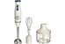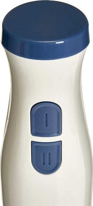 Параметры Максимальная мощность 800 Вт Номинальная потребляемая мощность 400 Вт Объем чаши измельчителя 500 мл Описание Данный электроприбор представляет собой многофункциональное устройство для смешивания, измельчения и взбивания продуктов и жидкостей в бытовых и аналогичных условиях Цвет: белый с синим Насадка и нож из нержавеющей стали Три сменные насадки: насадка для измельчения и смешивания измельчитель венчик для взбивания Петелька для подвешивания Противоскользящие ножки чаши измельчителя Два скоростных режима Автоматическая блокировка при неправильной установке Упаковка: цветная коробка