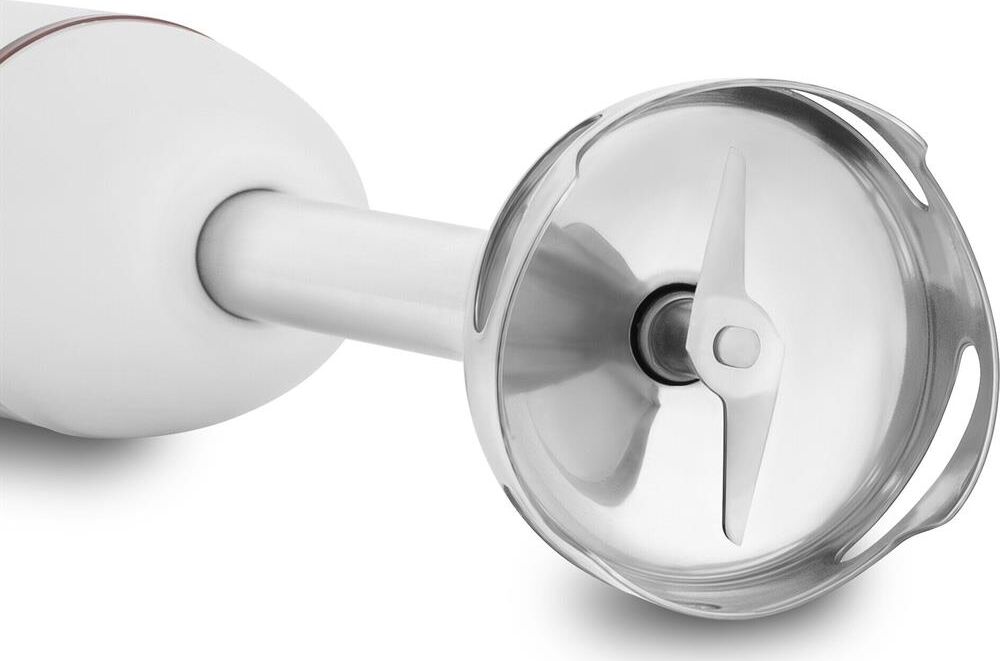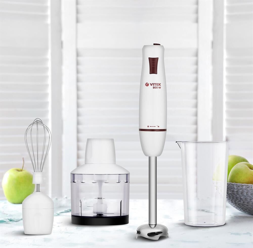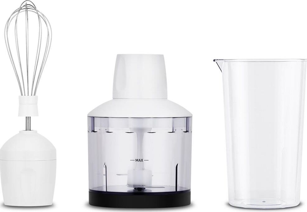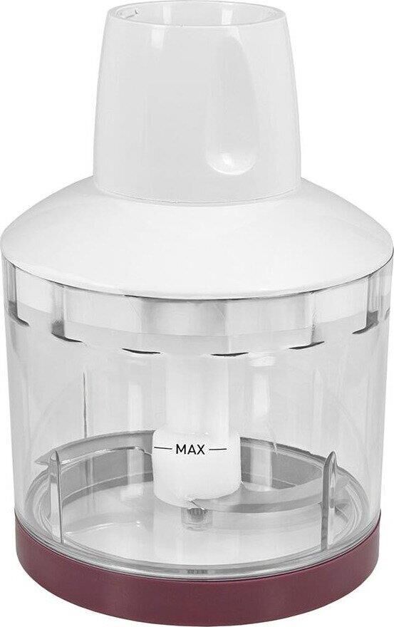 Максимальная мощность 800 Вт, Количество скоростей 20, Материал корпуса пластик, Материал погружной части металл, Плавная регулировка скорости, Длина кабеля питания 1.2 м , Мерный стакан 0.6 л, чаша для измельчения 500 мл (с крышкой) .
