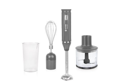 Тип блендерный набор. Мощность 800 вт. Количество скоростей 1. Управление механическое. Материал корпуса пластик. Материал погружной части нержавеющая сталь. Емкость измельчителя 450 мл. Емкость мерного стакана 700 мл. Венчик для взбивания. Мерный стакан. Длина сетевого шнура 110. Измельчитель.
