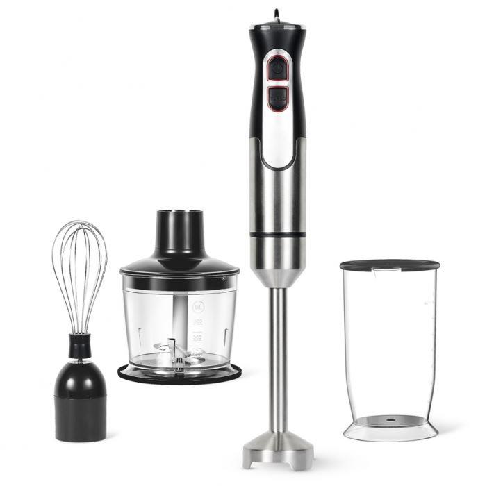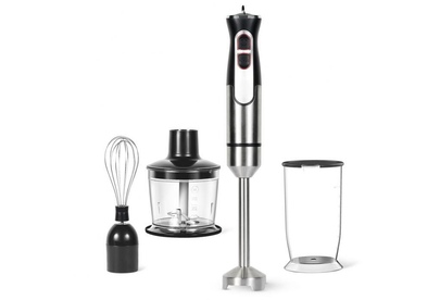 Корпус из нержавеющей стали и пластика Управление механическое Плавная регулировка скорости Длина шнура 1 м Объем мерного стакана 600 мл Объем чаши измельчителя 500 мл Тип ножей нержавеющая сталь Мощность 1400Вт Комплектация: Прибор Венчик для взбивания Переходник венчика Измельчитель с крышкой Мерный стакан с крышкой Инструкция