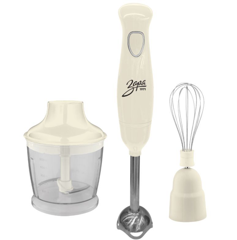 ЗАРЯ 301-03 Мощность 250 Вт, чаша-измельчитель (500 мл), насадка венчик, насадка блендер из нержавеющей стали УДОБНО Конструкция с прямым приводом наиболее удобна и проста в использовании. Ручка блендера изготовлена с учетом анатомических особенностей руки человека. МОЩНОСТЬ Высоко оборотистые двигатели данной модели позволяют свести время работы до нескольких секунд и полностью соответствуют европейским нормам безопасности. ЛЕГКОСТЬ В РАБОТЕ Использование разборной конструкции блендера позволяет его быстро мыть и компактно хранить. ФУНЦИОНАЛЬНОСТЬ С помощью блендера можно быстро и качественно: измельчить орехи, травы, сыр, приготовить горячее пюре прямо в кастрюле (50°С), смешать коктейль или детское питание.