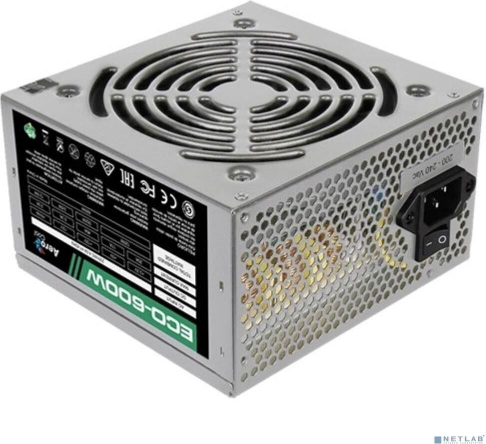 Блок питания AEROCOOL 600W Retail ECO-600W ATX v2.3 Haswell, fan 12cm, 400mm cable, power cord, 20+4P, 12V 4+4P,