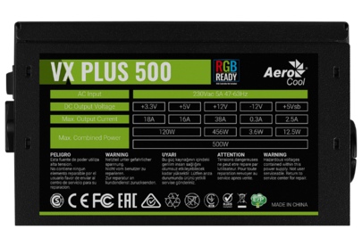 Блок питания AEROCOOL VX PLUS 500W, 500Вт, 120мм, черный, retail vx-500 plus