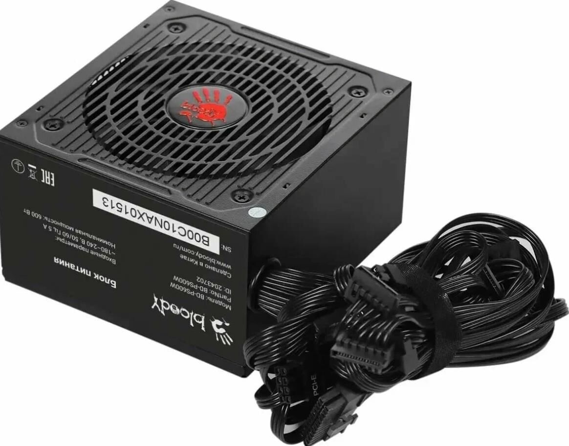 Блок питания Bloody BD-PS600W, 600Вт, 80 PLUS белый, 120мм, черный
