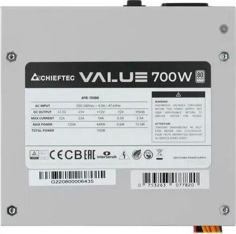 [Блок питания] Chieftec 700W OEM (APB-700B8) "Chieftec Value 700W ATX, 80PLUS WHITE, OEM"