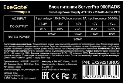 Форм-фактор: ATX 12V v.2.3 Модульный: Да PFC (Корректор фактора мощности): Активный Максимальный входной ток, А: 8 Диапазон входных частот, Гц: 47-63 Среднее время наработки на отказ, часов: 120000 Питание Входное напряжение, В: 115-242 Энергоэффективность (соответствие стандарту 80 PLUS®), %: 80% (80 PLUS) Максимальная выходная мощность, Вт: 900 Охлаждение Вентилятор, см: 1 x 14 см Уровень шума, Дб: 38 Выходной ток: +3.3B, А: 21 +5B, А: 20 +12B1, A: 72 +5Bsb, A: 2,4 -12B, A: 0,3 Мощность
