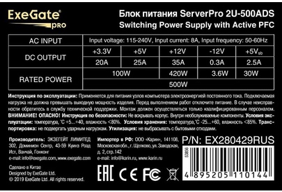 Блок питания EXEGATE ServerPRO-2U-500ADS