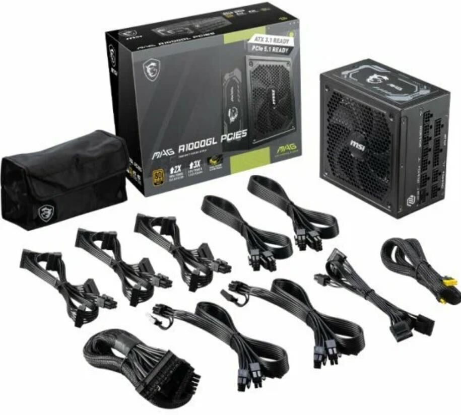 Блок питания MSI MAG A1000GL PCIE5 1000W, 80+ Gold, полностью модульный, ATX 3.0, PCIE5, RTL