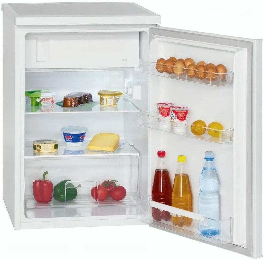 Количество камер: однокамерный. Расположение морозильной камеры: сверху. Тип управления: механическое. Класс энергопотребления: A++. Система размораживания: ручное. Общий объем холодильника: 119. Общий объем холодильной камеры: 105. Общий объем морозильной камеры: 14. Уровень шума: 40. Количество компрессоров: один. Хранение при отключении питания: 15. Мощность замораживания: 2. Количество полок: 2. Материал полок: стекло. Система размораживания: ручное. Тип: Холодильник. Хладагент: R600a. Количество ящиков: 1. Вес (нетто): 28. Количество дверей: 1. Тип компрессора: стандартный. Габариты упаковки (ед) ДхШхВ: 0.59x0.58x0.88. Вес упаковки (ед): 32.5. Страна производства: Китай. Количество полок на дверце: 3. Наличие морозильной камеры: есть. Температура морозильной камеры max: -18. Температура холодильной камеры max: 8. Поверхность: матовая. Направление открывания двери: вправо. Гарантия: 12 мес.. Цвет: белый. Потребление энергии: 141 кВт*ч/год. Размеры (ШхВхГ): 56 х 84.5 х 57.5 см. Особенности конструкции: пер