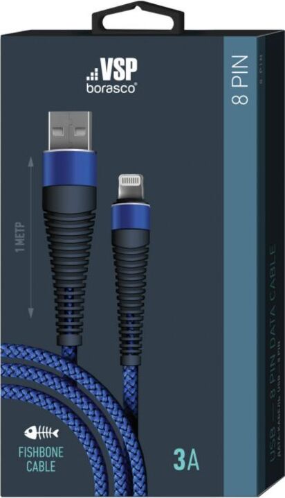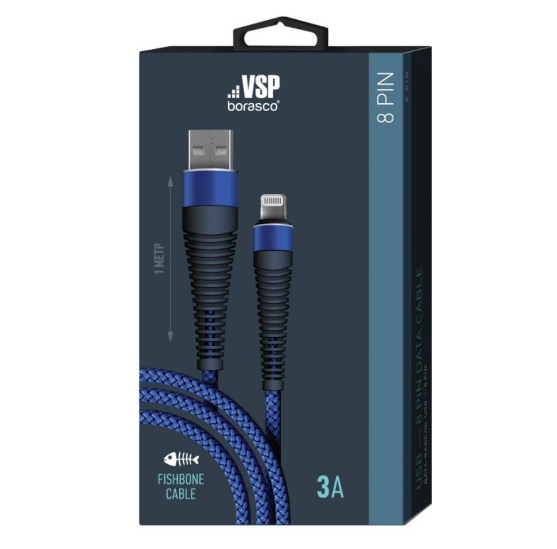 BORASCO Дата-кабель Fishbone USB - 8 Pin 3А 1M синий (38499)
