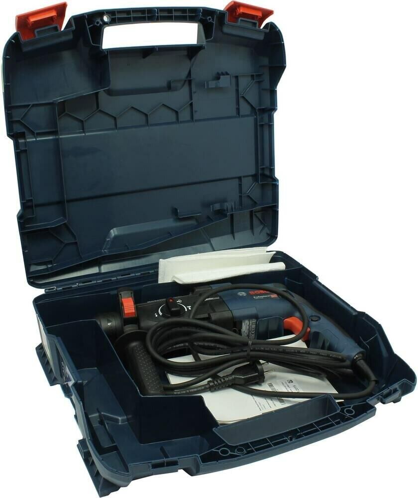 Потребляемая мощность: 880. Количество скоростей: односкоростной. Наличие функции "сверление": есть. Наличие функции "сверление с ударом": есть. Наличие функции "удар без сверления": есть. Максимальная энергия удара: 3.2. Количество патронов в комплекте: один. Тип основного патрона: SDS-plus. Максимальный диаметр сверления (сталь): 13. Макс. диаметр сверления полыми коронками: 68. Максимальный диаметр сверления (дерево): 30. Наличие функции "реверс": есть. Наличие предохранительной муфты: есть. Встроенный фонарик: нет. Дополнительная рукоятка: есть. Ограничитель глубины сверления: есть. Жесткий кейс в комплекте: есть. Вес инструмента: 2.9. Длина сетевого кабеля: 4. Длина инструмента: 216. Высота инструмента: 216. Комплект поставки: Перфоратор Bosch GBH 2-28, ограничитель глубины 210 мм., дополнительная рукоятка, салфетка, инструкция, кейс.. Тип электропитания: от электросети. Габариты упаковки (ед) ДхШхВ: 0.451x0.37x0.12. Вес упаковки (ед): 3.9. Страна производства: Германия. Гарантия: 12 мес.. Число оборотов
