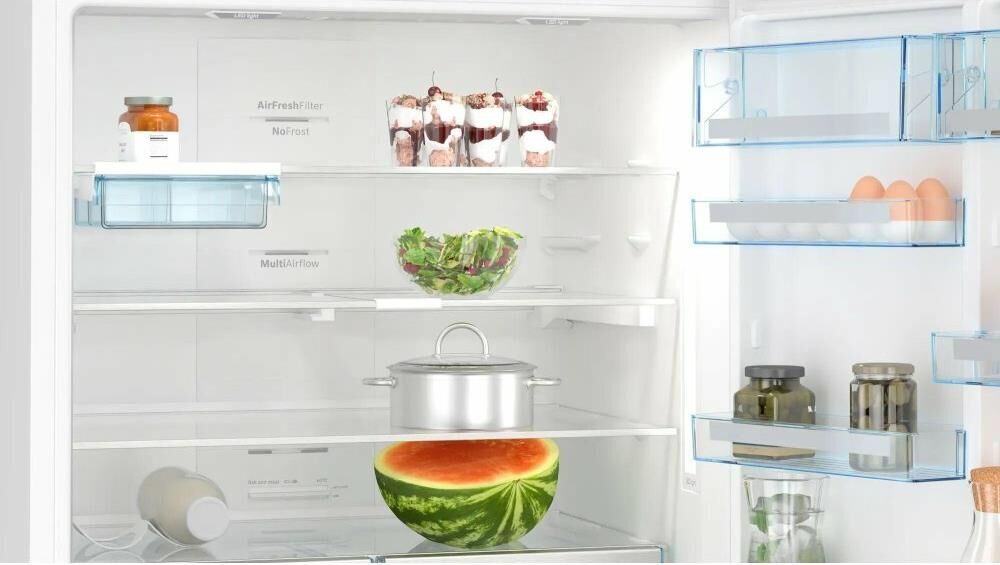 Количество камер: двухкамерный. Расположение морозильной камеры: снизу. Тип управления: сенсорное. Класс энергопотребления: A++. Система размораживания: No Frost. Уровень шума: 40. Количество компрессоров: один. Хранение при отключении питания: 30. Мощность замораживания: 20. Количество полок: 4. Количество ящиков: 2. Материал полок: закаленное стекло. Зона свежести: есть. Система размораживания: No Frost. Тип: Холодильник. Полезный объем холодильника: 619. Полезный объем холодильной камеры: 479. Полезный объем морозильной камеры: 140. Хладагент: R600a. Количество ящиков: 4. Вес (нетто): 114. Количество дверей: 2. Тип компрессора: стандартный. Габариты упаковки (ед) ДхШхВ: 0.92x0.88x1.925. Вес упаковки (ед): 118.3. Страна производства: Турция. Количество полок на дверце: 6. Материал дверей: металл. Наличие морозильной камеры: есть. Технология зоны свежести: VitaFresh plus. Технология многопоточного охлаждения: MultiAirflow. Технология суперзаморозки: SuperFreezing. Тип дисплея: внешний. Европейский класс энер