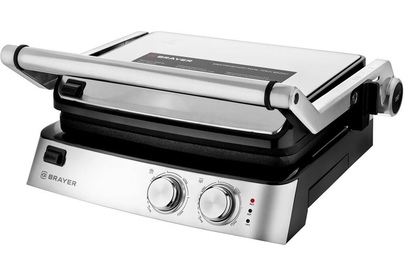 2007BR Гриль – пресс электрический BRAYER, 2000 Вт, съём.пласт 29*23 см, рег.расст,макс.темпер 240 С Мощность 2000 Вт Съёмные моющиеся пластины с антипригарным покрытием Размер пластин: 29х23 см Максимальная температура 240° Регулировка расстояния между пластинами по высоте продукта Корпус из высокопрочного пластика, декорирован нержавеющей сталью Вертикальное хранение для компактного размещения на кухне Открытие крышки на 180° Поддон для сбора жира Защита от перегрева Электропитание 220-240 В, 50-60 Гц