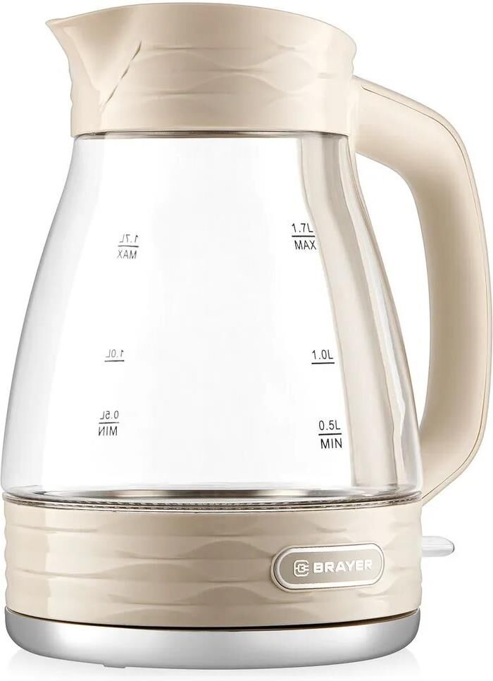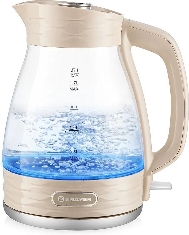 1066BR Чайник электрический BRAYER, 2200 Вт, 1,7 л, стекл.корпус, автооткл.при закипании