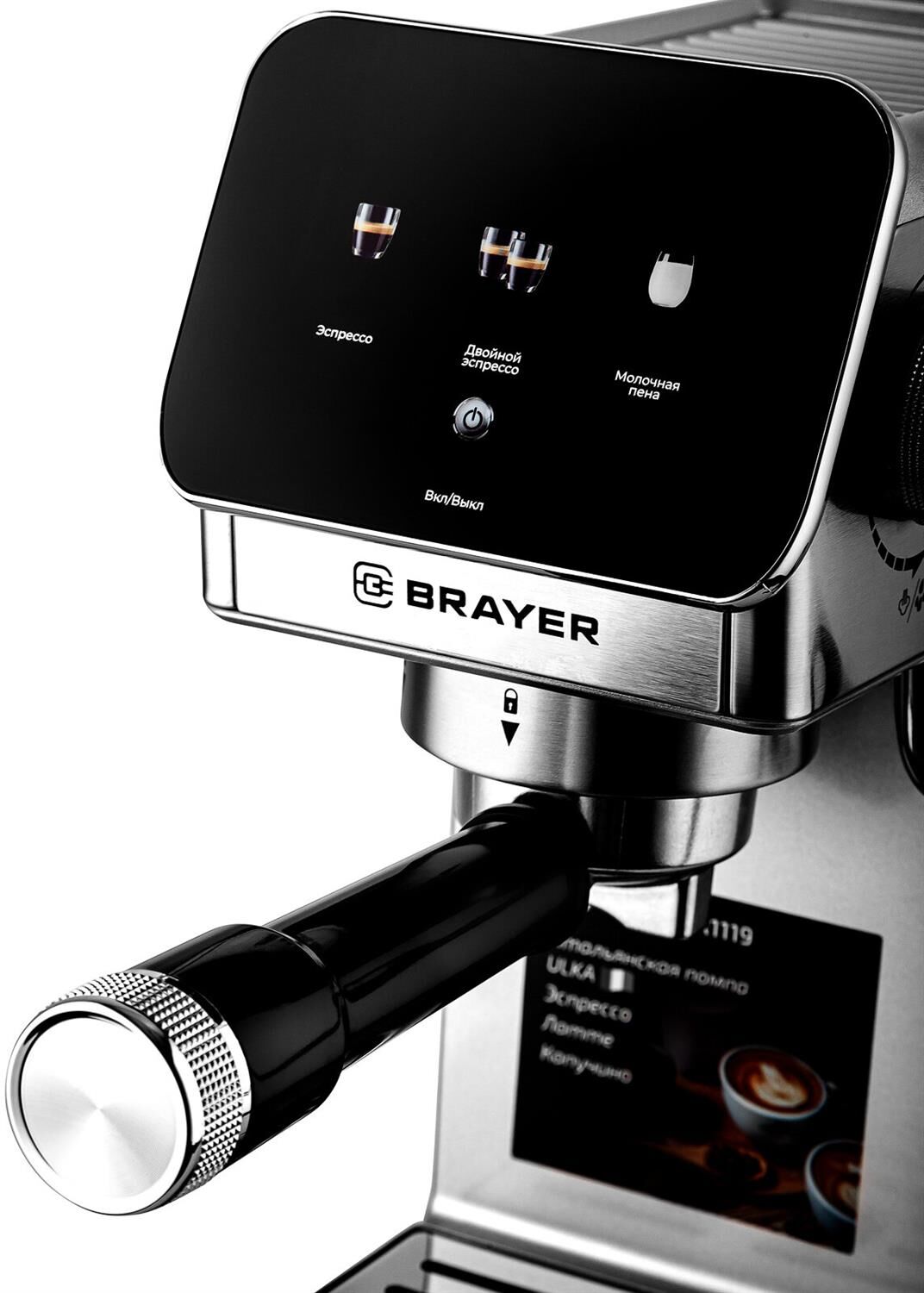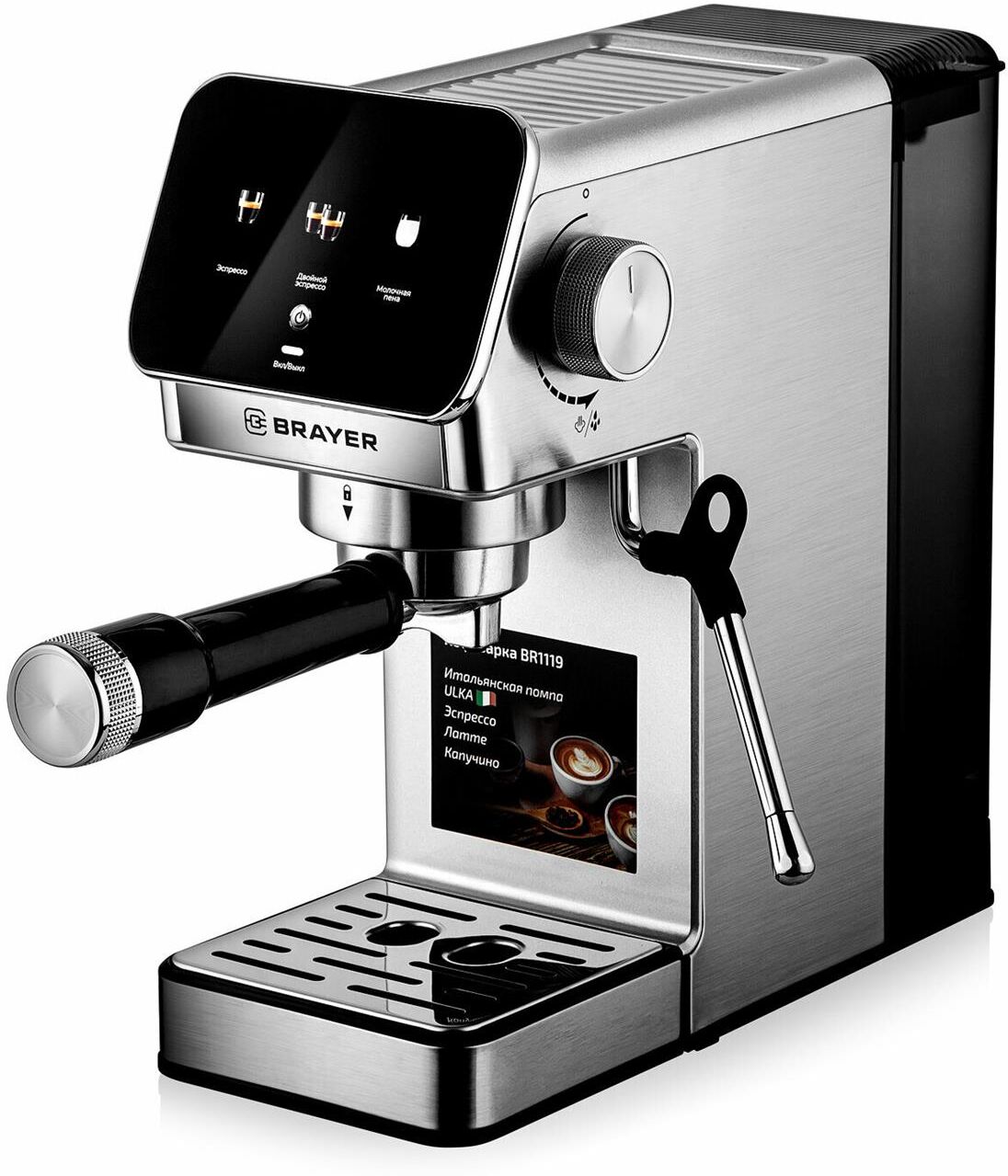 1119BR Кофеварка BRAYER, 1350 Вт, 20 бар, автомат.капуч, резерв. для воды 1,2 л., ULKA