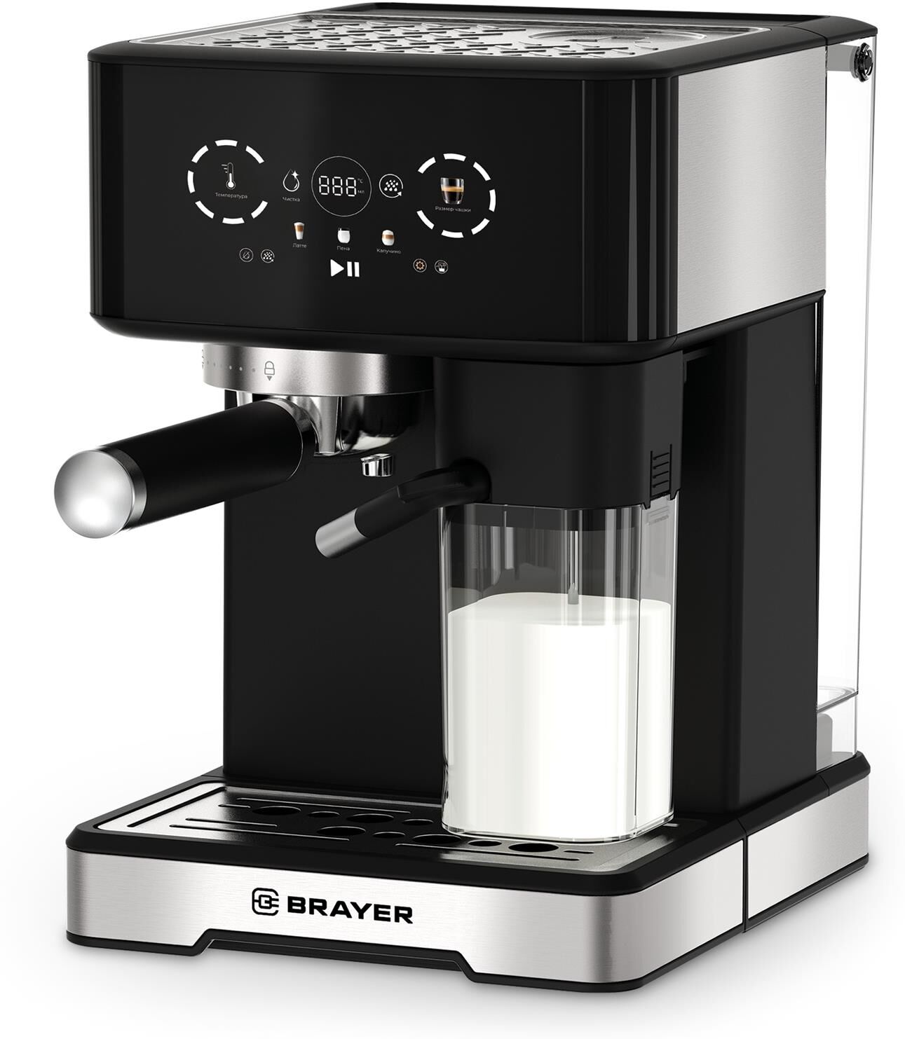 1146BR Кофеварка BRAYER, 1400 Вт, 20 бар, автомат.капучин, резерв 1,7л, резер.д.молока 0,3 л, сенср