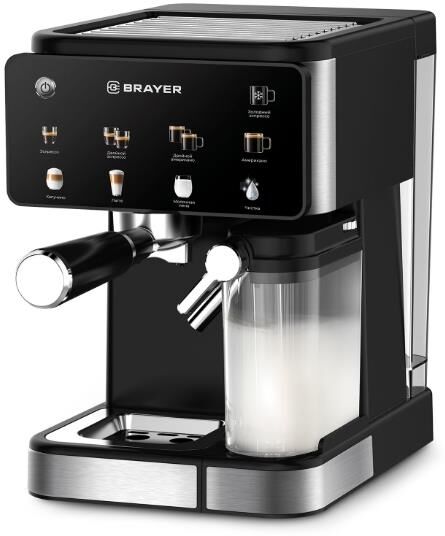 1147BR Кофеварка BRAYER,1350 Вт, 20 бар, резерв 1,5л, резер.д.молока 0,5 л, сенср, чалды, капсулы