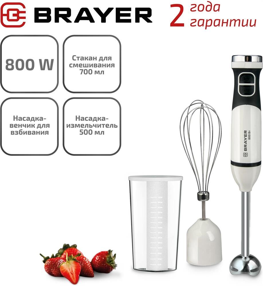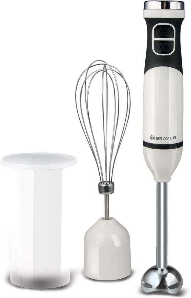 1263BR Блендер погружной BRAYER, 1500 Вт, измельчит 1,5 л, терка,шинков, рез кубик, венч., капуч.