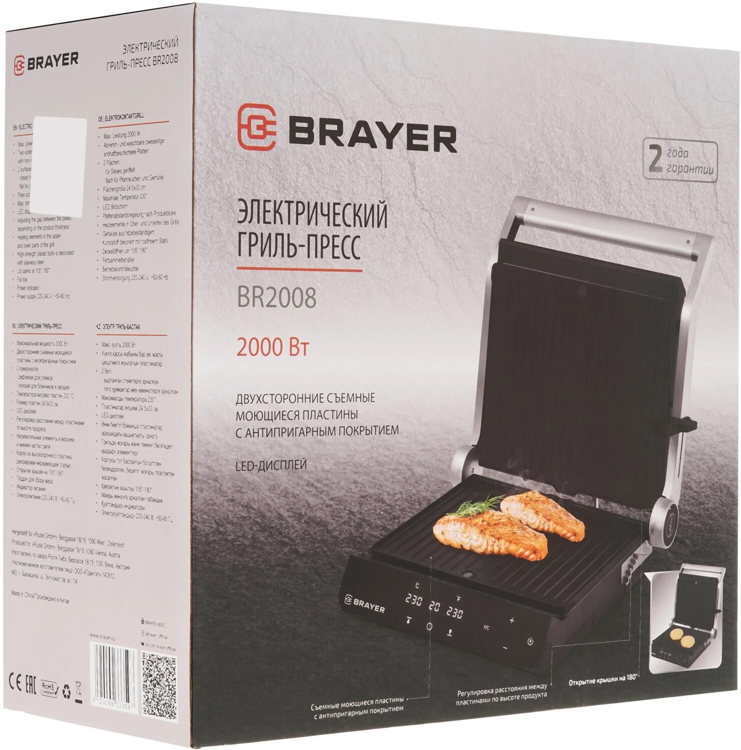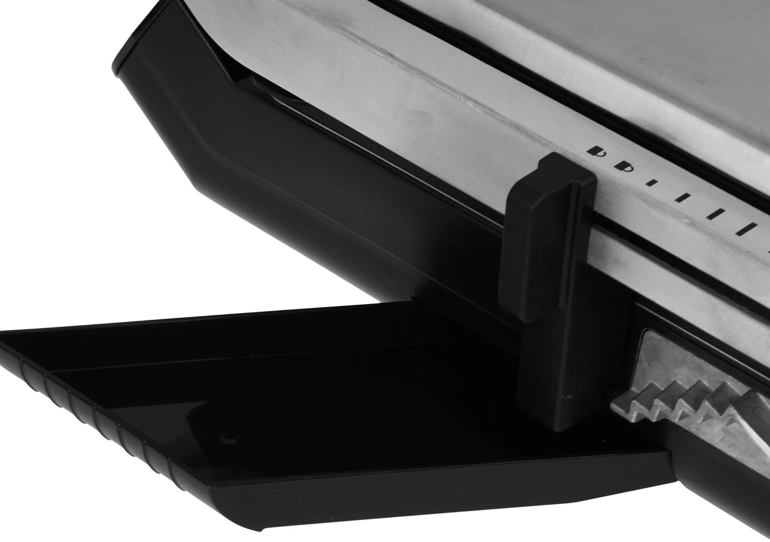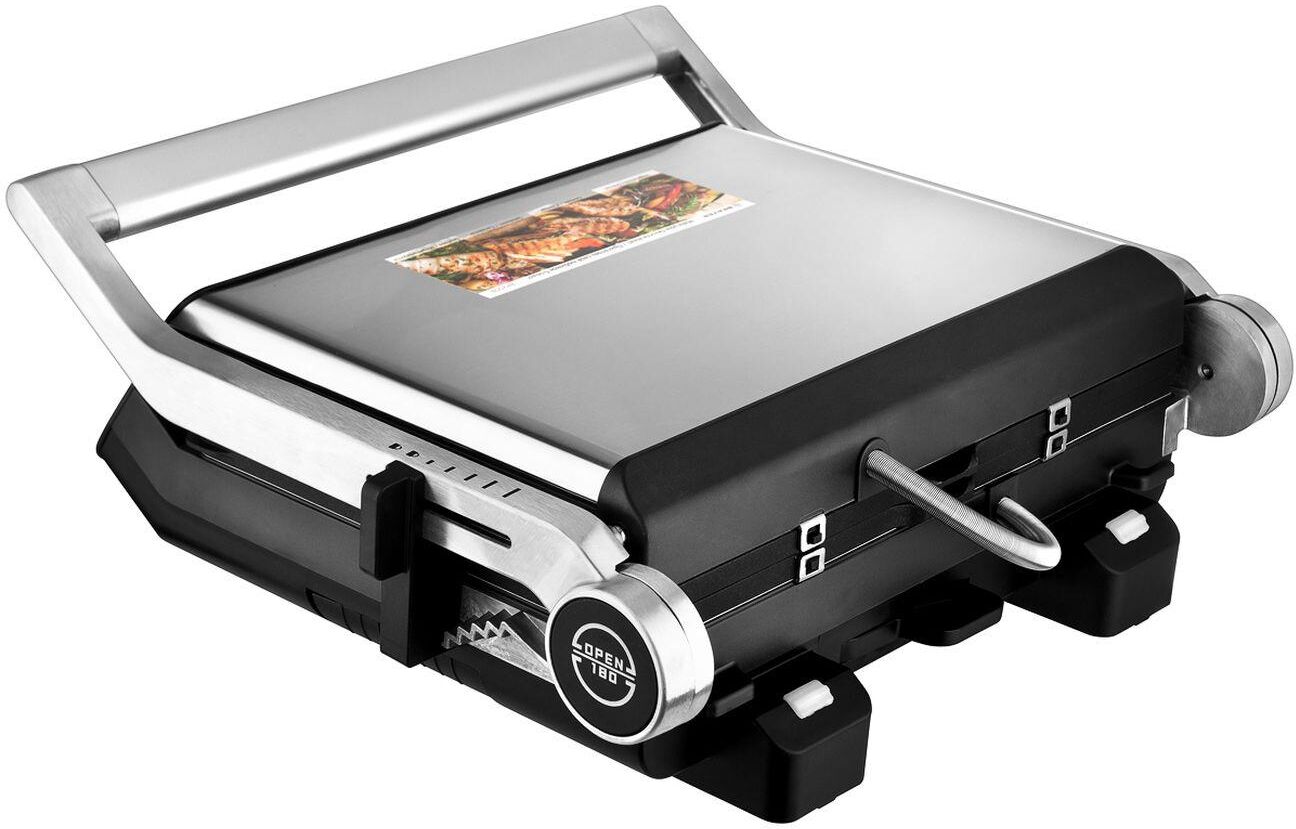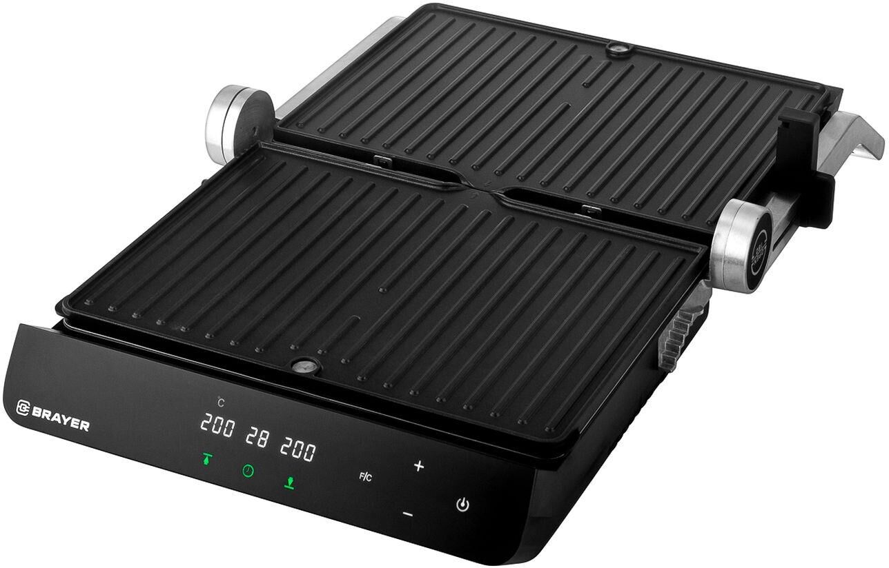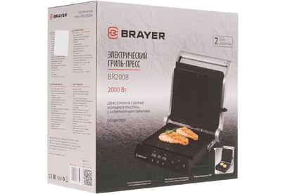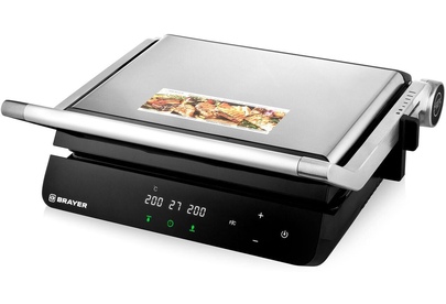 Мощность 2000 Вт Двухсторонние съемные моющиеся пластины с антипригарным покрытием 2 поверхности: - рифленая для стейков - плоская для блинчиков и овощей Температура нагрева пластин 230 °С Размер пластин 24,5x33 см LED-дисплей Регулировка расстояния между пластинами по высоте продукта Нагревательные элементы в верхней и нижней частях гриля Корпус из высокопрочного пластика, декорирован нержавеющей сталью Открытие крышки на 105°-180° Поддон для сбора жира Индикатор питания Электропитание 220-240 В, ~50-60 Гц