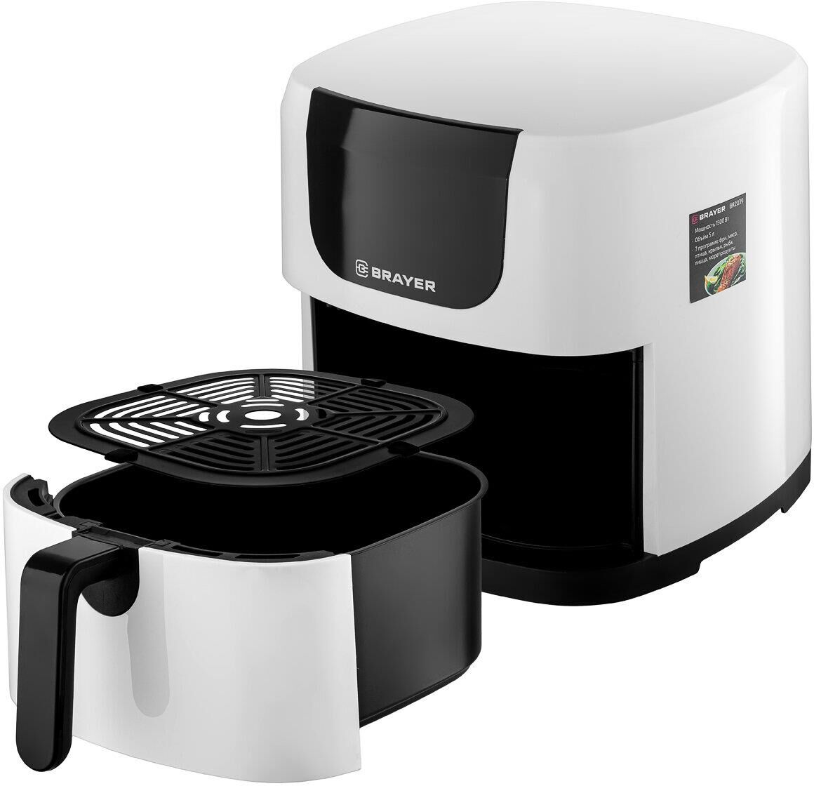 2039BR Аэрогриль BRAYER, 1500 Вт,5 л, t. 200С, съемная решетка, таймер, LCD-дисплей, 7 программ