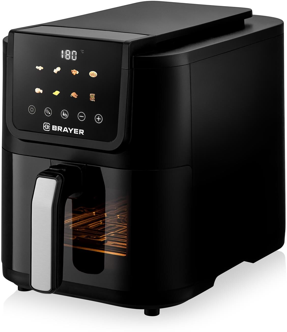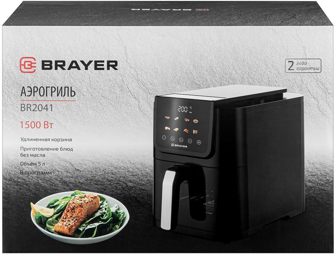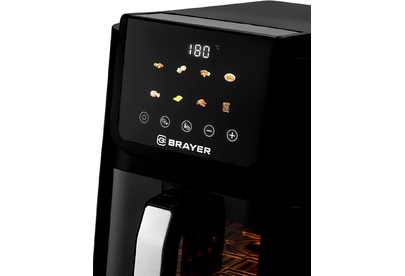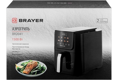 Мощность 1500 Вт Объем 5 л 8 программ: креветки, мясо, крылья, овощи, выпечка, фри, рыба, бекон Удлиненная корзина Корпус из высокопрочного термостойкого пластика Сенсорное управление LCD-дисплей Смотровое окно Регулировка температуры 40–200 °С Таймер до 60 мин Съемная решетка с антипригарным покрытием Электропитание 220-240 В, ~ 50-60 Гц