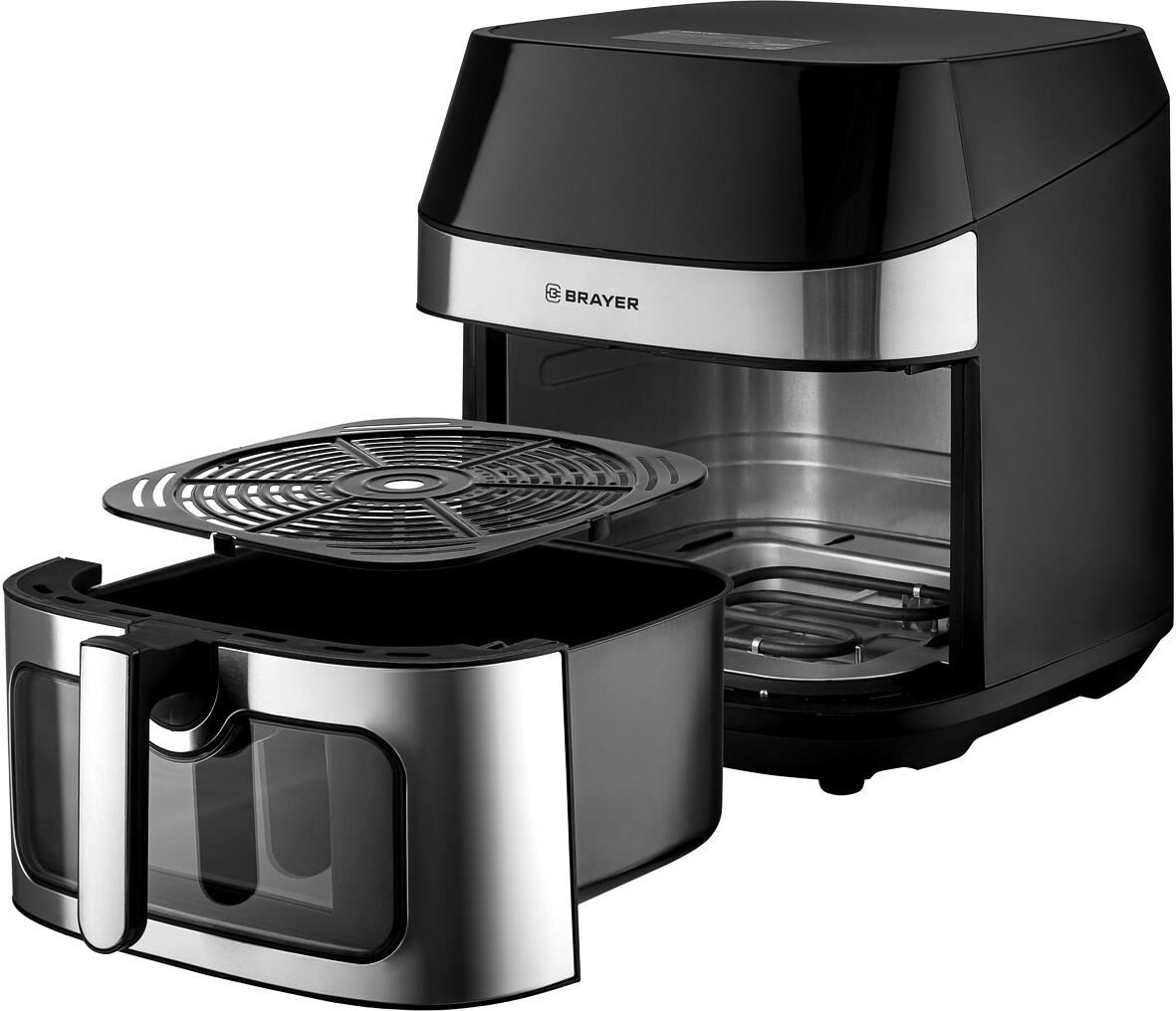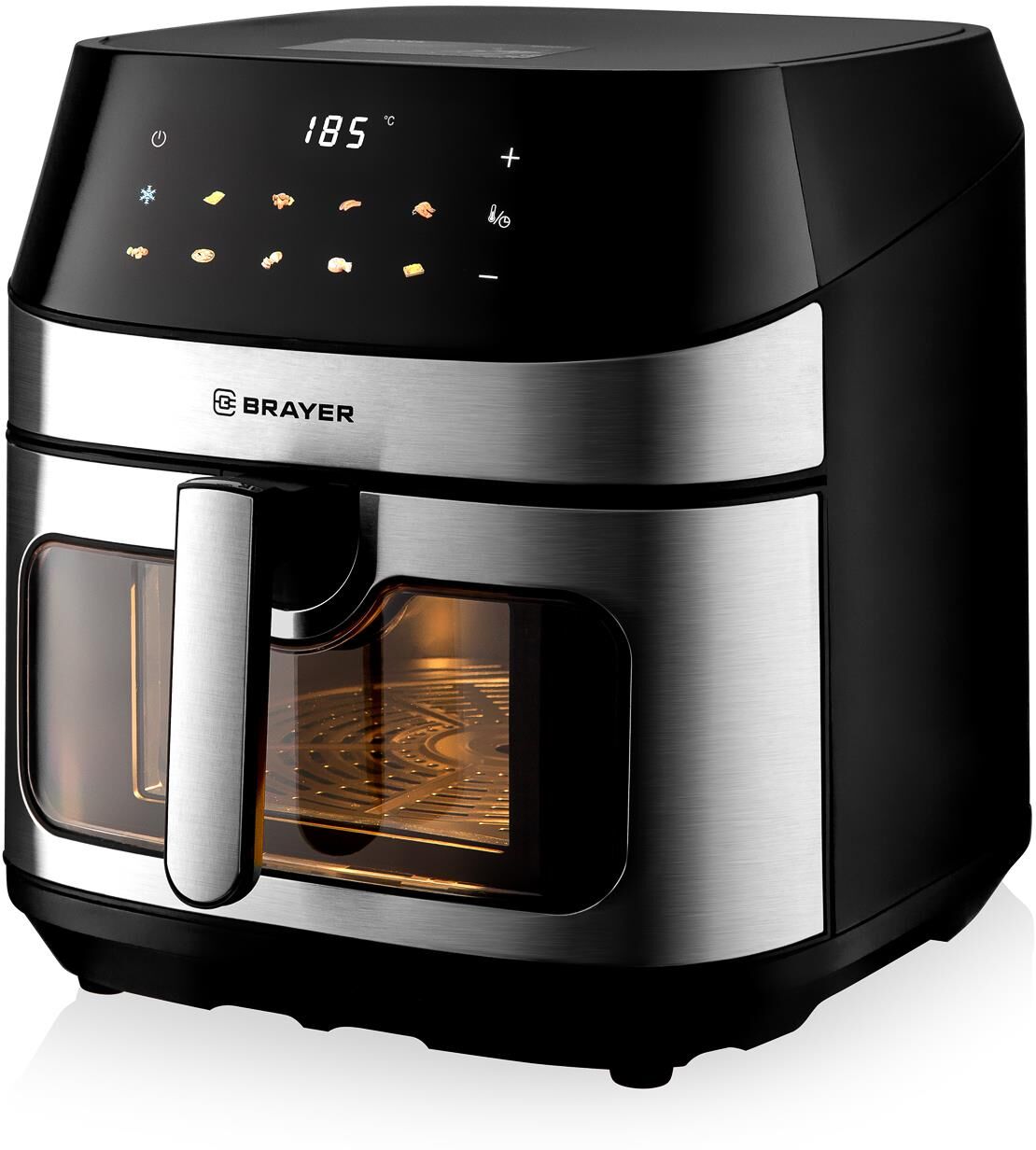 Мощность 1700 Вт Объем 8 л 10 программ: разморозка, фри, голень, колбаски, рыба, морепродукты, пицца, мясо, кекс, сушка 2 тэна для равномерного прогрева с двух сторон Корпус из высокопрочного пластика, декорирован нержавеющей сталью Функция подогрева пищи Сенсорное управление LCD-дисплей Регулировка температуры 80–200 °С Таймер до 120 мин Съемная решетка с антипригарным покрытием Звуковой сигнал готовности блюда Электропитание 220-240 В, ~ 50-60 Гц