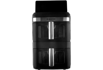 Мощность 2800 Вт Объем 13 л Объем верхней чаши 6,5 л Объем нижней чаши 6,5 л Индивидуальная настройка программ для каждой чаши 10 программ: фри, курица, рыба, мясо, пицца, овощи, крылья, морепродукты, кекс, разморозка Корпус из высокопрочного термостойкого пластика Сенсорное управление LED-дисплей Регулировка температуры 60–200 °С Таймер до 60 мин Съемные решетки с антипригарным покрытием Звуковой сигнал готовности блюда Высота аэрогриля: 40.8х28.2х42.3 см Электропитание 220-240 В, ~ 50-60 Гц