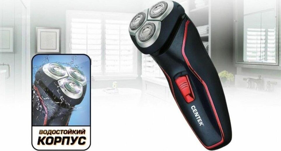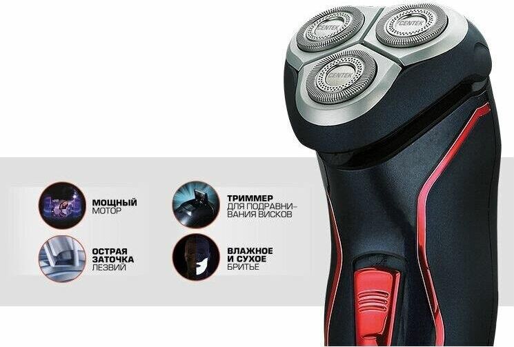 Бритва Centek CT-2171 (черн) ротор 3D, +ВЛАЖНОЕ БРИТЬЁ, 3 плав.головки, триммер, до 50 мин раб