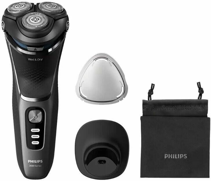 Тип бритвы: роторная. Кол-во бритвенных головок/сеток: 3. Плавающая головка бритвы: есть. Система электропитания: от аккумулятора. Время автономной работы: 60. Время полного заряда: 1. Габариты упаковки (ед) ДхШхВ: 0.14x0.08x0.19. Вес упаковки (ед): 0.53. Время быстрой зарядки для одного бритья: 5. Способ бритья: сухое/влажное. Тип аккумулятора: Li-ion. Гарантия: 12 мес.. Цвет: черный. Размеры (ШхВхГ): 65 х 150 х 60 мм. Дополнительная комплектация: зарядное устройство, защитная каппа (колпачек), подставка для зарядки, чехол. Индикация: остаточной зарядки, полной зарядки, разрядки. Функциональные особенности: быстрый заряд, повторение контуров лица, промывка ножей под водой. Конструктивные особенности: встроенный триммер, нескользящая рукоятка/вставка. Время полного заряда: 1 ч. Тип бритвы: роторная. Способ бритья: сухое/влажное. Бритвенных головок: 3 шт. Время автономной работы: 60 мин. Питание: от аккумулятора