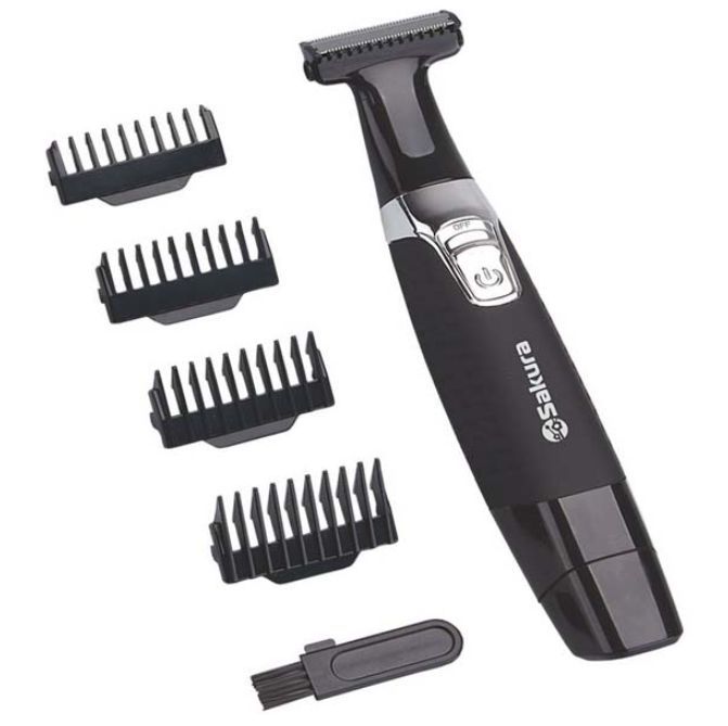 Триммер универсальный - для бороды, висков, тела, острые стальные лезвия, питание от 1хАА, 4 насадки-гребня: 1,2,4,6 мм, цвет: черный.